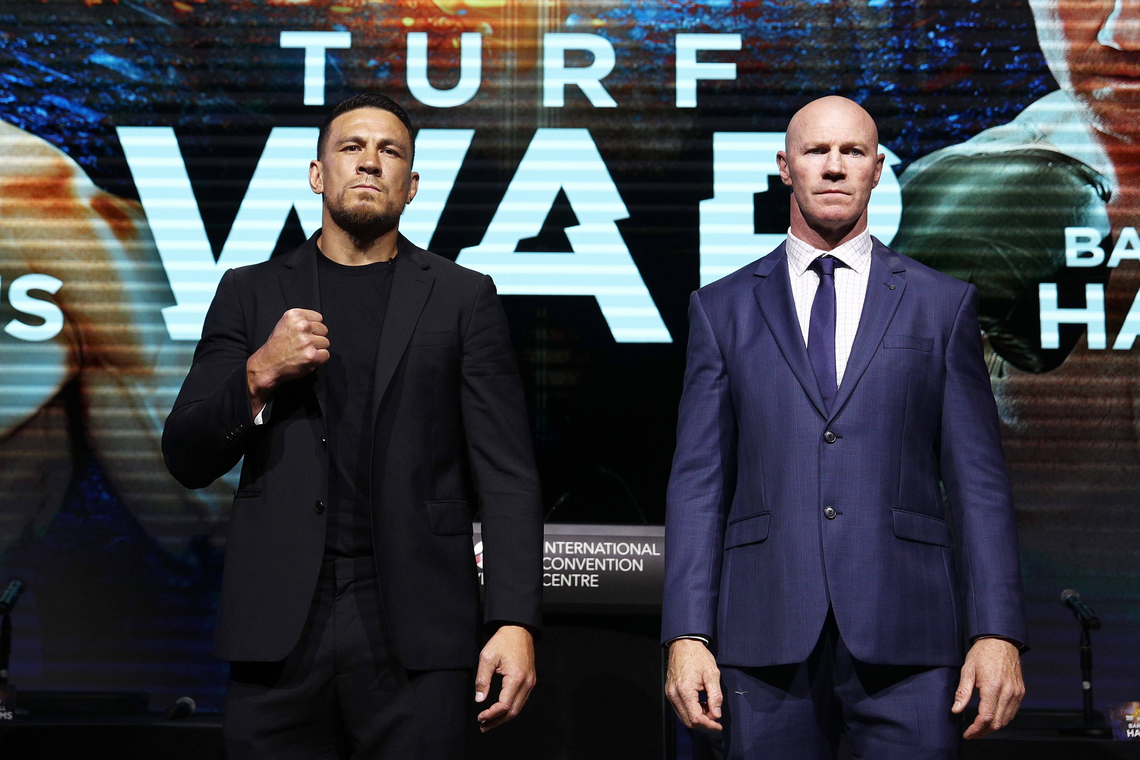 Photo Getty Images. Rugby international superstar Sonny Bill Williams and AFL legend and Premiership winner Barry Hall are set to face off in a highly-anticipated boxing event in March 2022 at the Turf War event. Almost nine years.